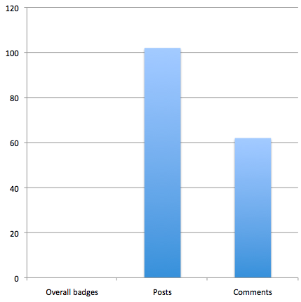 Of the 165 badges calculated 102 were given for posts, and 62 were given for comments (Fig. 1).