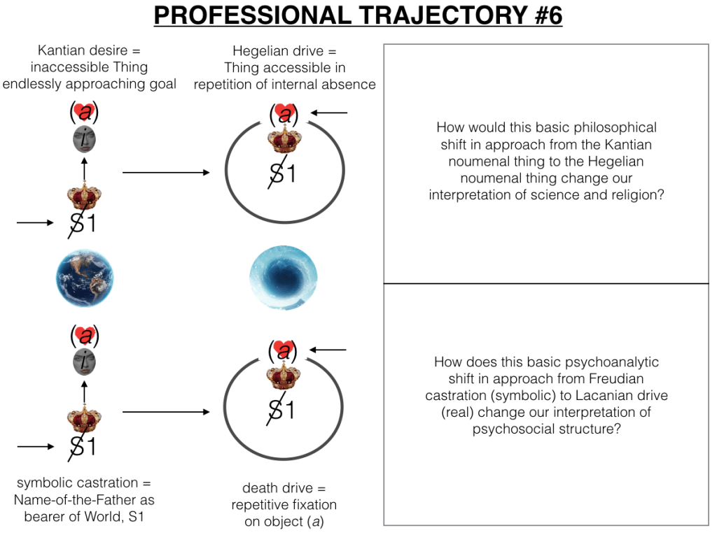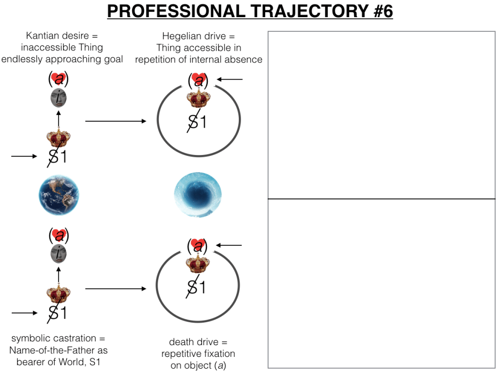 - Professional: Symbolic castration (world) to the real drive (death)